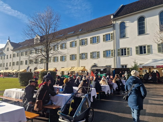 Bei wechselhaftem Wetter nutzten unzählige Besucher aus dem ganzen Land die Gratis-Anreise an den Bodensee mit Bus und Bahn. Der Duft von Glühwein, Glühmost, knackigen Grillwürsten, Suppen, Raclette und Bregenzerwälder Kässpätzle strömte durch den sehr stimmungsvollen Innenhof und luden zu einem gemütlichen Adventshock ein.